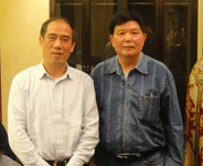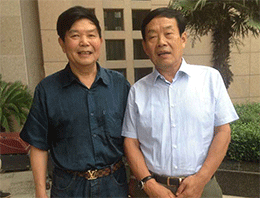 中國(guó)抗癌協(xié)會(huì)常務(wù)理事、河南省抗癌協(xié)會(huì)會(huì)長(zhǎng)楊文獻(xiàn)教授和《百花散》傳人梅先生合影